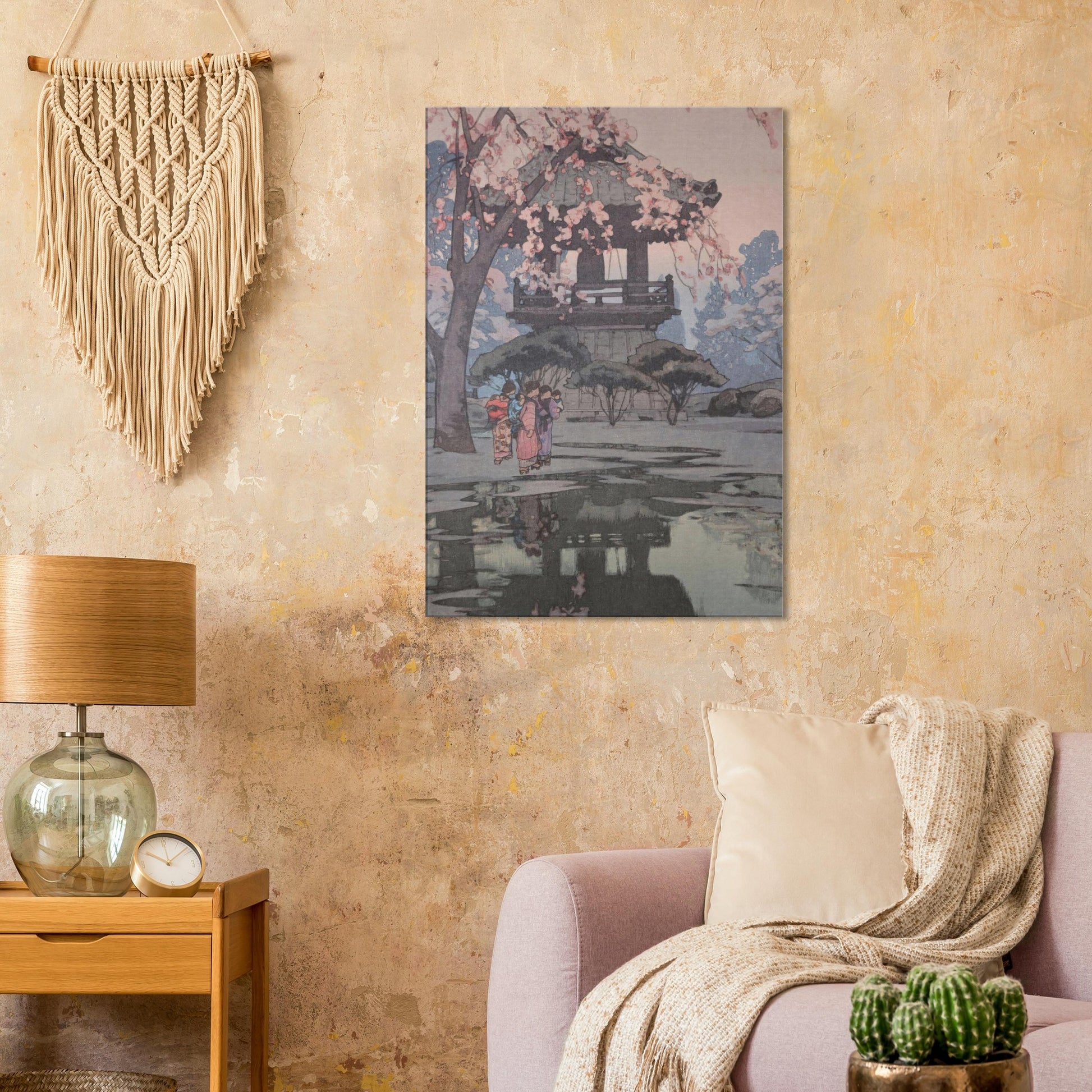 Bring the serene beauty of temple grounds in spring into your home with this textured slice of artistic mastery.
