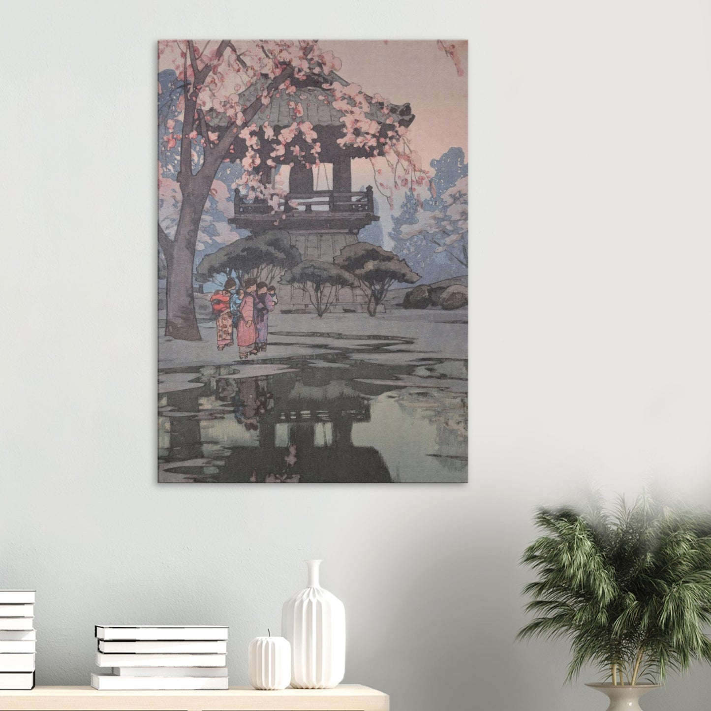 Temple Yard, bringing the woodblock art to life. The rich canvas